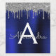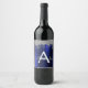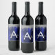 Silver Navy Blue Glitzer Brushed Metal Monogram Weinetikett