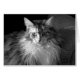 Dramatische Seitenbeleuchtung hebt die funkelnden Augen dieser schönen Katze hervor. Die Karte wird leer verlassen, damit Sie sie mit Ihrer eigenen Nachricht personalisieren können.