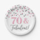 70 und fabelhafte Geburtstagsparty Teller mit silber und rosa Glitzer Muster Konfetti.