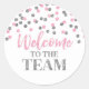 Silver Pink Confetti Willkommen im Team Runder Aufkleber