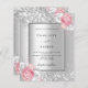 Imitat silber aussehender Hintergrund mit rot-rosa und weiß Blumen, Blume und Imitate silberne Glitzer, Glitzern. Personalisieren und fügen Sie Ihre Namen und Hochzeitsdetails. Schwarze Buchstaben. Zurück: Fügen Sie Ihre Hochzeitswebseite url/link zum QR-Code für weitere Details und/oder UAWG. 1 Blatt = 1 Einladung gedruckte Kante zu Kante.