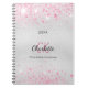 A faux silver metallic looking background decorated with pink faux glitter dust. Personalize and add your first name, monogram initials, full name and a year.