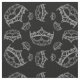 Dieser Stoff hat die silberne Version der Königin von Herzen Gold Kronen tiara von mir, Kristie Hubler, Copyright Oktober 2001, gemacht für den Stoff Foto meines Kunden Queenie's Stoff Rahmen, via fabricatedframes.com Es sind silberne Kronen / Tiaras auf schwarzem Hintergrund, mit Herz-Form Diamanten und Perlen innen.