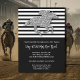 Ein Tag bei den Pferderennen, ein Imitat silberner Glitzer Racehorse auf schwarz-weiß Streifen oben und schwarz Bereich unten mit Ihren Event Details in chic Schriften. GLEICHE Favoriten, Teller, Servietten, Weinflaschen, Handfächer und vieles mehr finden Sie in unserer Kollektion.