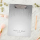 Chic personalisierte Zwischenablage mit zwei Textzeilen in klassischer schwarzer Schrift, auf einem hellgrauen, omber Hintergrund mit Streifen von Imitaten silberne Folienzeichenbeleuchtung. Design wiederholt sich auf der Rückseite.