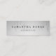 Die eleganten und eleganten Visitenkarten in einer papierrettend Minigröße sind mit klassischen schwarzen Schriftzeichen auf einem hellgrauen, omber-farbenen Hintergrund mit Litzen von Imitaten mit silbernen Silber-Folienzeichenbeleuchtung versehen. Fügen Sie Ihre vollständigen Kontaktinformationen auf der Rückseite ein. Eine einmalige und elegante Wahl für jeden Beruf; ein Beispiel für Ästhetiker.