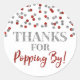Vielen Dank für Popping by Gunst Tag Aufkleber mit silber und roten Glitzer Muster Konfetti. Perfekter Popcorn-Gefallen für Hochzeit oder Babydusche.