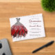 Mit dieser eleganten Party Einladung mit einem funkelnd silber- und roten Kleid und den Party-Details in grauer und roter Typografie-Schrift laden Sie Ihre Quinceañera-Gäste stilvoll ein, um sie mit Imitaten aus silberem Glitzer auf Acrylbasis zu personalisieren. Entworfen von Susan Coffey.