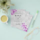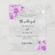 Bitte beachten Sie, dass diese Einladung auf Flyer Papier und sehr dünn ist. Umschläge sind nicht enthalten. Für dickere Einladungen (gleiche Gestaltung) besuchen Sie bitte unseren Shop. Ein Imitat silber aussehender Hintergrund mit Imitaten silberne Glitzern und rosa und violette Blume. Personalisieren Sie Ihre Namen und Details und fügen Sie diese hinzu.