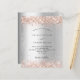 Ein Imitat silber aussehender Hintergrund. Dekoriert mit Rose Gold Imitat Glitzer. Personalisieren Sie Ihre Namen und Details und fügen Sie diese hinzu. 1 Blatt = 1 Einladung mit Druckkante bis Kante.