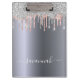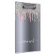 Girly und glamorous. Falsch silver metallic looking background with rose gold, pink and falsilver glitter drips, paint dripping look. Personalize und add a name. The name is written with a modern and trendy hand lettered style script with swashes. White colored letters. To keep the swashes only delete the sample name, leave the spaces or emoji's in front and after the name.