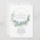 Wald Eukalyptusgrün Feier des Lebens Einladung mit goldenem geometrischem Rahmen und silberne Salbei Wasserfarbe rückwärts angepasst an Ihre Event-Spezifikationen.