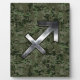 Ein silbernes metallisches wie Sagittarius zodiac Symbol auf einem grünen Wald Stil digitale Tarnmuster Design Textur Hintergrund. Ein modernes urbanes Design für eine großartige Geschenkidee zum Geburtstag. Verwenden Sie den Link "Diesen Designer Gefragt", um uns mit Ihren speziellen Designanfragen oder für Hilfe bei Ihren Anpassungsbedürfnissen zu kontaktieren.