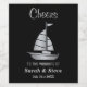 Passen Sie diese modernen nautischen Segeletiketten für eine Hochzeit oder ein Jubiläum an. Das Design ist mit einem silbernen Segelboot auf schwarzem Hintergrund ausgestattet. Die Hintergrundfarbe kann angepasst werden. Fügen Sie die Namen der Braut und Bräutigam und fügen Sie Ihre Hochzeit Datum.