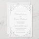 Diese elegante Vintag-inspirierte formelle Hochzeitseinladung enthält den Text in silberfarbenem Drehbuch und Serif-Schriftart, gerahmt von einem zarten Vintagen Silberrebe-Motiv. Die Rückseite bietet Platz für Hochzeitsdetails, zusammen mit einem QR-Code können Gäste scannen, um Ihre Website und UAWG zu besuchen, was die Kosten für den Druck und Versand separater RSVP-Karten rette.