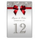 Silver Sequins Red Bow Wedding Tischnummer Cards