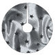 Einfache schwarze Sterne bedecken diesen silbernen, schimmernden Weihnachtsbaumrock, der einem luxuriösen Stoff für eine Touch von Glamour ähnelt.