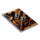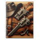 Ein Gemälde mit zwei glänzenden Revolvern und einem verwitterten Cowboy-Hut, der das Wesen des wilden Westens einnimmt.