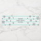 Winterflaschenschild mit hellblauen und weißen Streifen mit festlichen Silberschneeflocken. Ideal für ein Brautparty zu Weihnachten.