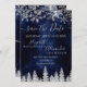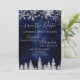 Zeit, um Ihr winterliches Hochzeitsthema mit diesem luxuriösen silbernen Glitzer Schneeflocken Glitzern und silbernen Glitzer Kiefernwald auf einem eleganten marineblauen Aquarell, mit einer modernen coolen Skript-Schriftart Typografie zu feiern. Eine schicke und elegante Hochzeitskarte Save the Date.