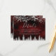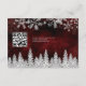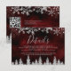 Time to celebrate your winter wonderland wedding theme with this luxury silver glitter snowflakes sparkles and silver glitter pine tree forest details cards on an elegant festive dark red watercolor background, featuring a modern cool script font typography.