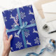 Dieses elegante Urlaubspapier zeichnet sich durch ein wechselndes Muster silberner Imitate aus, die Glitzer-Rentier- und Schneeflockenbilder darstellen. Die Bilder werden auf einem dunkelkönigsblauen Hintergrund platziert. Elegant und festlich für die Feriensaison, und während des ganzen Winters! *Bitte beachten Sie, dass das Bild gedruckt ist und keinen Glitzer enthält.*