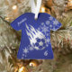 Dieses Holiday-Ornament besticht durch eine silberne Silhouette-Fußballkugel mit Flammen vor einem Spritzer verzierter Silberschneeflocken. Das Bild wird auf einem Gradienten tiefblauen Hintergrund platziert. Ihr eigener Text ist in Silber auf der verlassen Hülle, und ein zweites Feld rechts unten. Die Rückseite des Ornaments hat den gleichen blauen Hintergrund und Schneeflocken, und zusätzliche Textfelder, die Sie anpassen können. Ideal für Fußballspieler oder Fan.