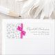 Ein winterliches Wunder-thematisches Rücksendelabel mit einer bedruckten rosa Bändeschleife und silbernen Schneeflocken. Designs sind flache gedruckte Illustrationen/Grafiken - NICHT AKTUELLES RIBBON.