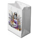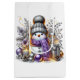 Ein mittelgroßer Geschenkbeutel mit einem Schneemann mit Silberhut und Lila Scarf