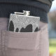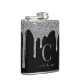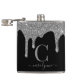 Silver-Sparkle-Glitzer-Tropfen auf Black Monogram Flachmann