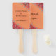 Hübsche Malerei silberner Sterne-Blume auf braunen Stielen, auf einem blendet orangefarbenen und roten Hintergrund, wird auf Handventilatoren gedruckt. Das Design der Blume deckt die untere und die obere rechte Ecke ab. Der orangefarbene Hauptbereich befindet sich in der Mitte und fügt sich in die roten Ecken ein, die in den beiden genannten Ecken unter den Blume des Sterns liegen. An der Vorderseite des Lüfters befindet sich ein Platzhalter für die Namen des Bräutigams und der Braut. Auf der Rückseite des Ventilators steht: Danke. Sie sind eine großartige Wahl für Hochzeiten. Vielen Dank für Ihren Einkauf bei CherylsArt auf Zazzle.