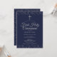 Elegante erste heilige Kommunion Einladung mit zarten silbernen Sternenstaub, können Sie mit Ihren speziellen Informationen in schicken Text auf einem marineblau Hintergrund personalisieren. Entwickelt von Thisisnotme©