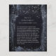 Benutzen Sie dieses Formular in Ihrer Einladungssuite, um Informationen zu den Anfahrtszeiten oder Unterkünften anzubieten oder um einen Wunsch oder einen frag anzubieten. Die Rückseite ist leer, damit Sie ein Bild oder eine Karte hochladen können. Ein prächtiger, schwarzer Nachthimmel inmitten glitzernder silberner Sterne, der auf klassische englische Schrift-Kalligraphie mit einem Flattern glänzender silberner Farbflecken kaskadiert. Die Kollektion ist für jeden Anlass individuell anpassbar und enthält alle Schreibwaren, die Sie benötigen, um eine umfassende Einladungssuite zu erstellen, die Ihren Gästen einen bleibenden Eindruck verlasse. Ungewissheit, welche Artikel Sie brauchen, suchen Sie nach zusätzlichen Produkten oder wollte Hilfe bei der Texteinstellung? Senden Sie mir eine Nachricht über einen Chat oder per E-Mail an leonbience@rogers.com