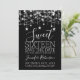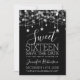 Silver & Black Sweet 16 Geburtstag Funkelnd String Lights "Save the Date" Ankündigungsvorlage mit Party-Adresse und UAWG Details.
