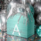 Silber und Aquamarine Aqua Blue Imitats Foil Metallic Sparkle Glitzer gebürstete Metal Monogram Name und Initial Paper Party Geschenkboxen. Das macht den perfekten 16 Geburtstag, Hochzeit, Brautparty, Jubiläum, Babydusche oder Junggeselinnen-Abschied Geschenk für jemanden, der Lieben glamourösen Luxus und schicke Stile.