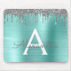 Silver Teal Glitter Brushed Metal Monogram Name Mousepad