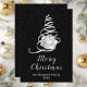 Diese elegante und schicke Urlaubskarte kann mit Ihrem Familiennamen personalisiert werden. Das Design ist mit einem silbernen Band Weihnachtsbaum mit einem Geschenk ausgestattet. Der Text kombiniert handgeschriebene Skripte mit modernen serifenlosen Schriftart für ein elegantes und raffiniertes Aussehen. Der fallende Schnee, Schneeflocken und Glitzern geben eine festliche und magische Touch.