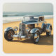Silver Vintage Auto am Strand Quadratischer Aufkleber