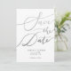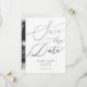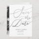 Elegante und einfache Hochzeit speichern Sie die Dattelkarte. Der handgeschriebene Typografietext ist in Imitaten silber Glitzer.
