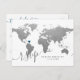 Die silbergraue World Map Theme Hochzeit in Urlaubsort POSTCARD uAwg OHNE ENVELOPES besticht durch ein elegantes minimalistisches Aussehen mit moderner Typografie, einer perfekten Gehäusekarte für eine Hochzeit in Urlaubsort- oder Reise-Themenparty mit beweglicher und abnehmbarer Herzlage. Der Rücken hat Platz für optionale Speisen und eine lustige Antwort auf das Thema Reise. Großartig, um mit einem Pass und Boarding Pass Einladungen für die Wanderlust Globetrotter Pärchen oder Bar mitzvah Feier. Klicken Sie auf Anpassen, um einen beliebigen Teil des Designs zu bearbeiten, damit er vollständig zu Ihrer Suite passt. Sehen Sie sich die passende Auflistung auf dieser Seite an, oder suchen Sie mithilfe des Designerspeichers nach passenden Produkten und anderen verfügbaren Farben.