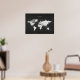 Die Welt. Eine Silver World Map Ausschnitt auf einem schwarzen Betonboden. Umfasst alle Staatsgrenzen.