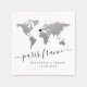 Silber, Schwarz und Weiß moderne Weltkarte mit individueller Herzenlage und Hochzeitsdestination mit Braut- und Bräutigam-Namen und Hochzeitsdatum auf mehreren personalisierten Servietten, die sich perfekt für ein Brautparty zum Thema Reisen oder für das Hochzeitsessen oder das Probe-Dinner eines reisenden Paares eignen. Verschieben Sie das Herz an einer beliebigen Stelle auf der Karte und geben Sie den Stadt- oder Ländernamen ein. - Besuchen Sie unseren Designer Shop für die Koordination von Artikeln mit dem gleichen internationalen Reisethema!