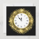 Das Design zeichnet sich durch helle, funkelnd Goldkonfetti in der Runde und eine Uhr in römischen Ziffern auf einer Seite und die Einladungsdetails auf der Rückseite aus. Weiße Gesichter/schwarze Hände.