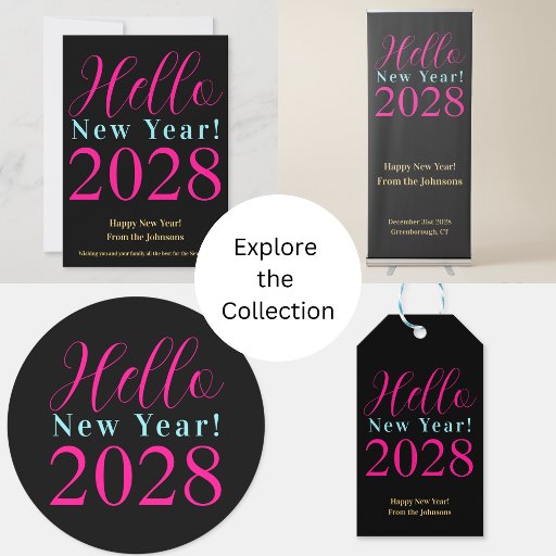 Das ist ein modernes und schicke, Silvester, Happy New Year Design. Es ist in trendigem schwarz und heiß rosa, mit modernen Typografie Skript-Design. Es hat die Meldung "Hallo Neues Jahr! 2028", "Frohes Neues Jahr! Von den Johnsons". Um zu personalisieren, fügen Sie einfach Ihren Namen und das Jahr der Feier, indem Sie die Personalisierung dieser Schaltfläche, hier können Sie auch die Erholung des Textes ändern, wenn Sie gewollt. Karo aus dem Entwurfsbearbeitungsprogramm, um die Farbe oder den Schriftart zu ändern. Wenn Sie Hilfe bei Personalisierung, passenden Produkten oder für ein individuelles Design benötigen, kontaktieren Sie mich per zazzle Chat oder per E-Mail: ursuladawnmoon@gmail.com Frohes Neues Jahr!