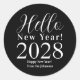 Silvester glücklich Neues Jahr Schwarz und Weiß Runder Aufkleber