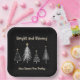 Moderne Schwarz-, Weiß- und Gold-Feiertage-Teller mit goldfarbenem Text und mit modernen weißen Weihnachtsbäumen dekoriert, und Text: Hell und hell, Silvester Party. Um die Hintergrundfarbe zu ändern, wählen Sie einfach aus unserem Color Picker Tool. Schauen Sie sich die passende Party Einladung und Napkins an.