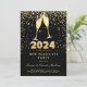 Silvester Party 2024 Gold Glitzer auf Schwarz Einladung