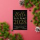 Das ist ein modernes und schicke Design, die Silvesterausgabe-Party Einladung. Es ist in elegantem Schwarz mit echtem goldenen Typografie-Skript-Design. Es hat die Meldung "Hallo Neues Jahr! 2028" mit Platz für Sie das Jahr der Feier hinzufügen. Darunter haben Sie Platz, um Ihren Namen und die Details Ihres Party, einschließlich Ort, Zeit und UAWG-Informationen hinzuzufügen. Um zu personalisieren, fügen Sie einfach Ihren Namen, das Jahr der Feier und Party-Informationen, durch die Verwendung der Personalisierung dieser Schaltfläche, hier können Sie auch die Erholung des Textes ändern, wenn Sie gewollt. Karo aus dem Entwurfsbearbeitungsprogramm, um die Farbe oder den Schriftart zu ändern. Wenn Sie Hilfe bei Personalisierung, passenden Produkten oder für ein individuelles Design benötigen, kontaktieren Sie mich per zazzle Chat oder per E-Mail: ursuladawnmoon@gmail.com Frohes Neues Jahr!