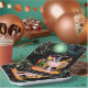 Silvester Party bricht schwarze Hintergrundpapier Teller. Genießen Sie ein Party voller Party-Spirituosen und gutes Essen für Ihr Party Ansammlung. Matching Karten und Zubehör.
