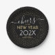 Das neue Jahr! Fügen Sie eine elegante, individuelle Touch zu den Dekorationen des Silvester Party mit stilvollen modernen runden Tellern. Alle Formulierungen auf dieser Vorlage sind einfach zu personalisieren. Das Schwarz-, Weiß- und Golddesign besticht durch Imitate-Folienkonfetti, moderne Skriptkalligraphie und klassische Vintage Deko-Typografie. Bitte beachten Sie, dass Gold farblich gedruckt ist, nicht metallische Folie. Alles Gute zum neuen Jahr!